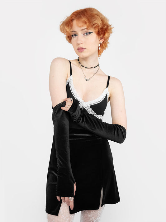 Lace Black Velvet Mittens