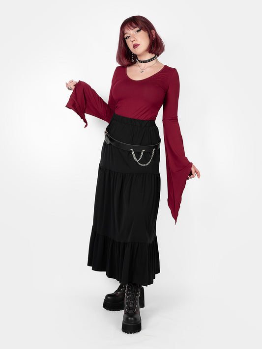 XS S M L XL XXL 3XLBurgundy Wisteria Bell Sleeve Top