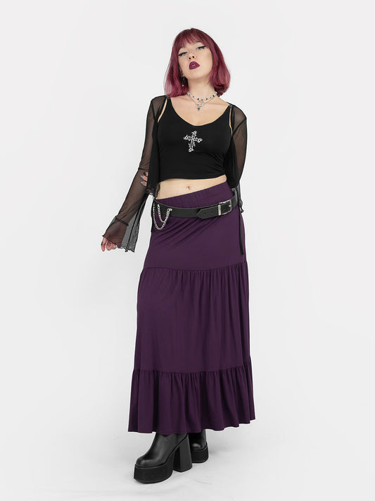 XXS XS/S M/L XL/XXLPurple Oblivion Ruffled Maxi Skirt
