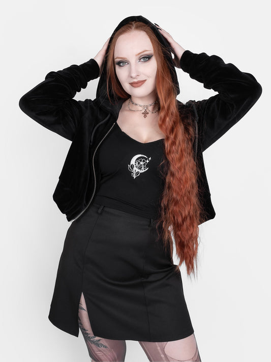 XS S M L XL XXLRosalind Lace Sleeve Velvet Top