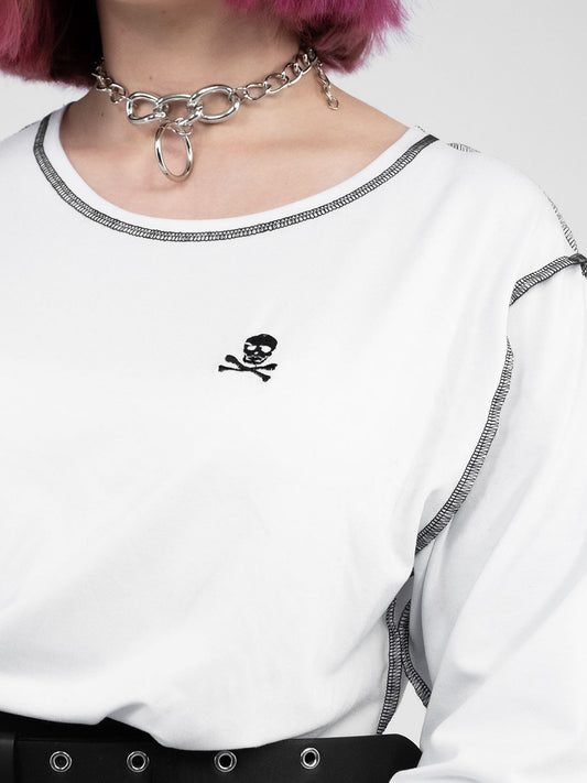 M L XL XXL 3XLSkully White Embroidered Longsleeve