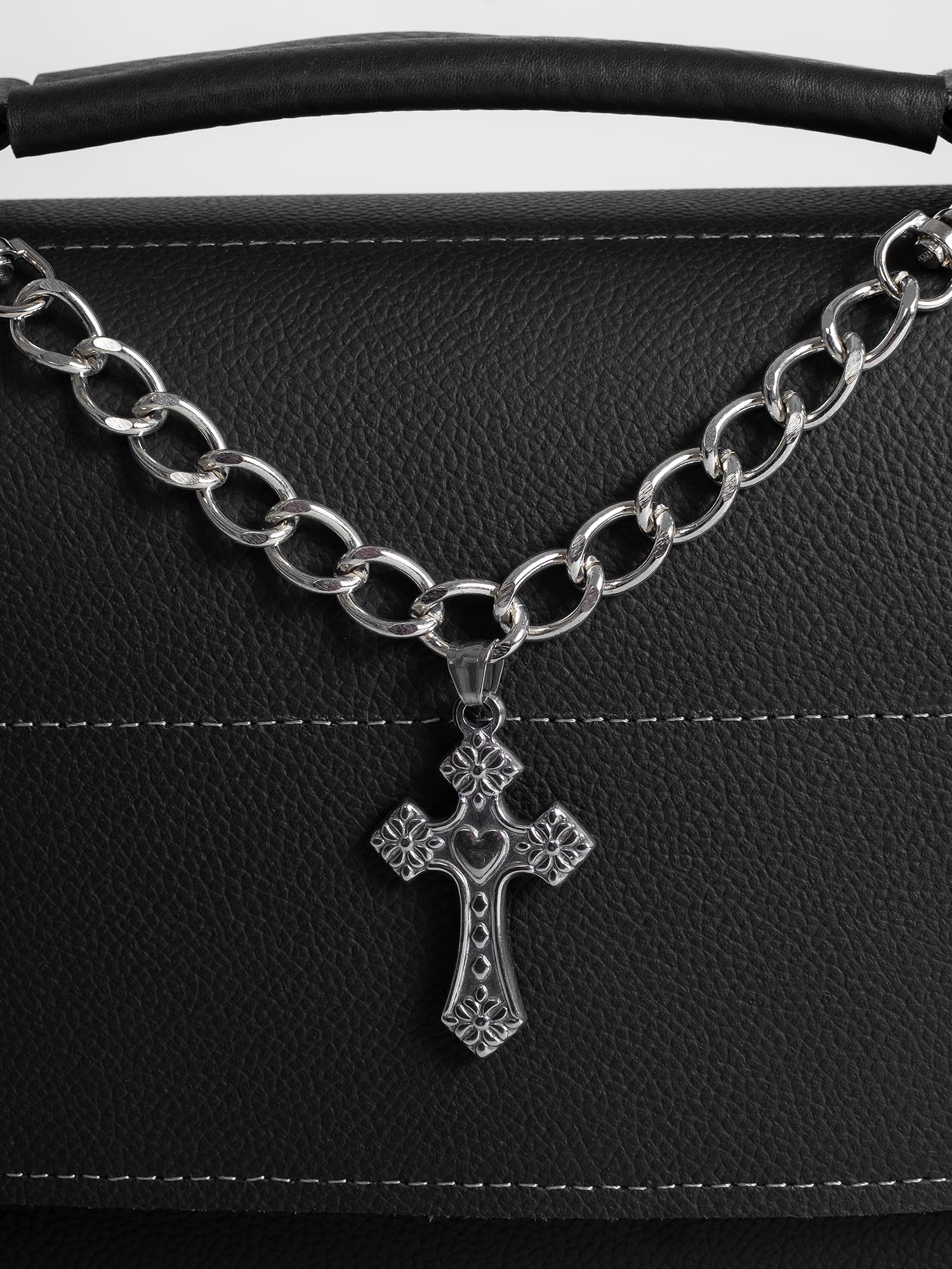 The Dungeon bag stands out pendants with a cross and a spiderweb.