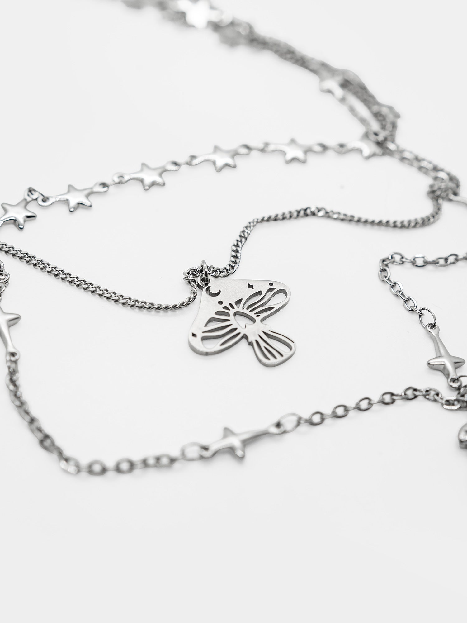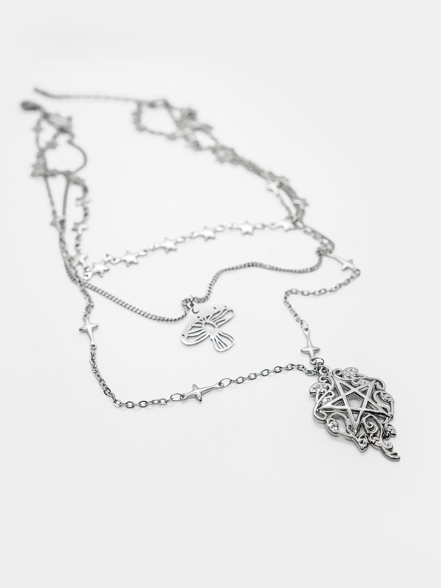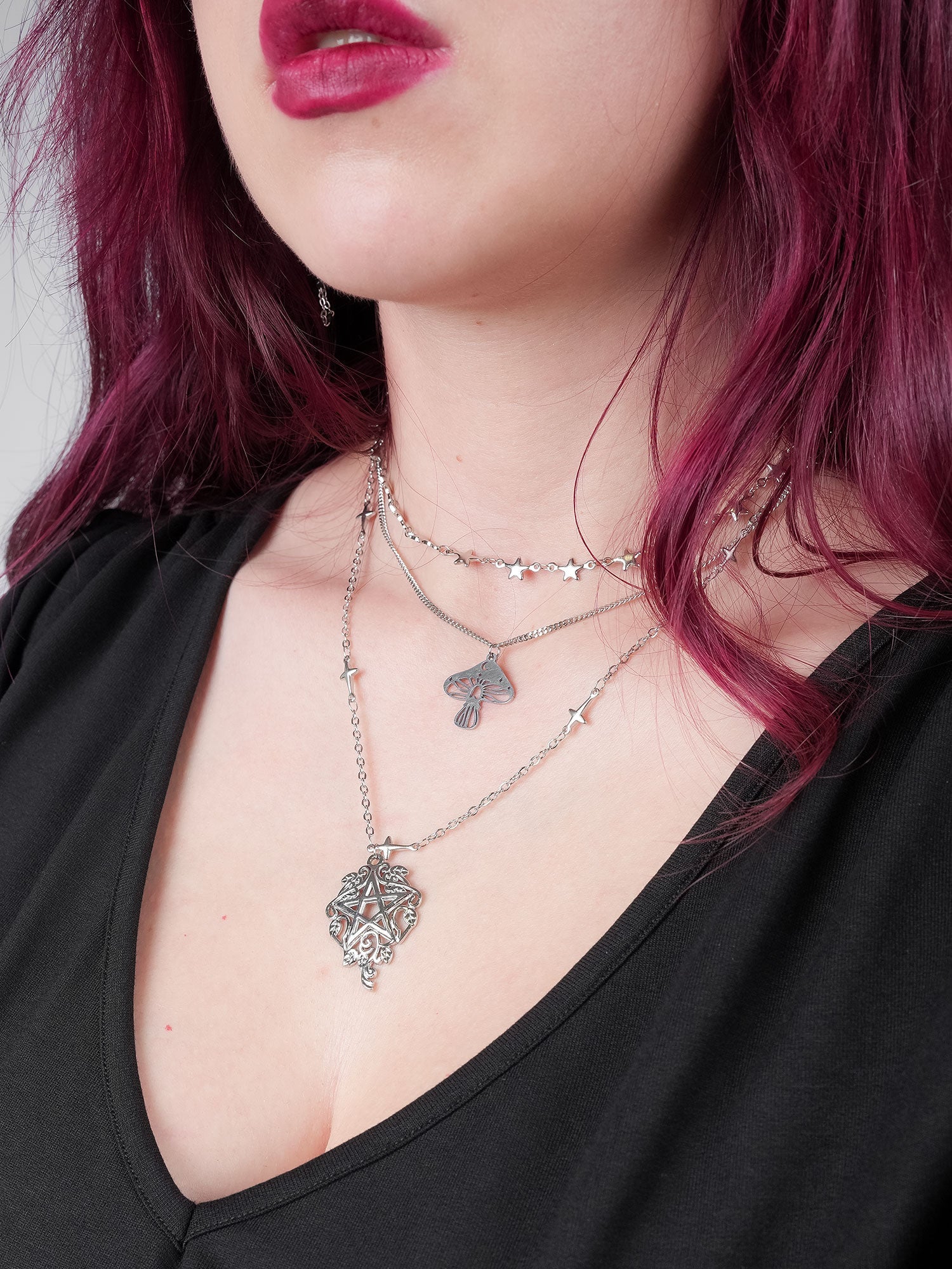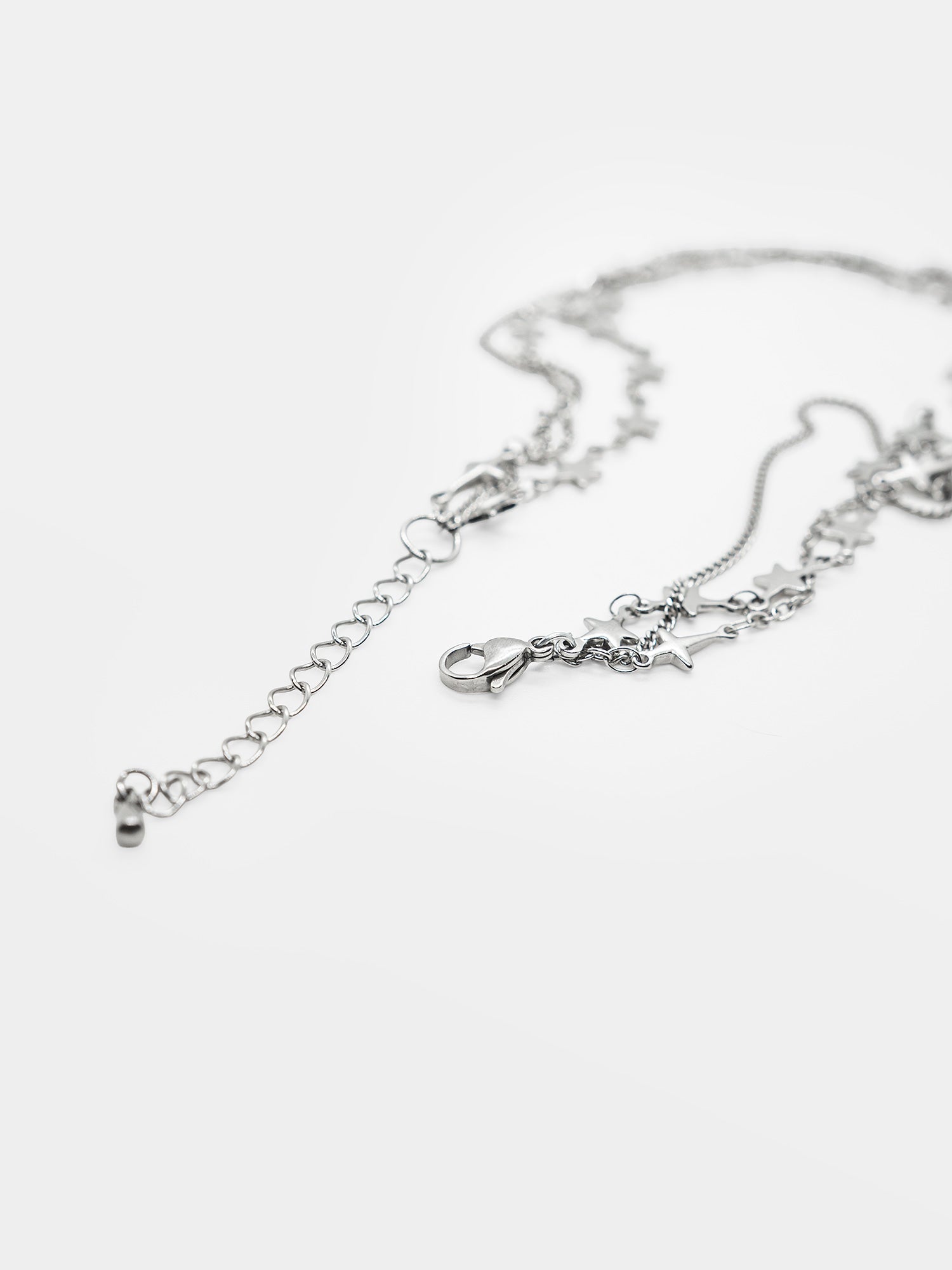 The shortest necklace measures 32cm, the longest 50cm. It also has a 5cm adjustable chain, allowing you to choose the right circumference.