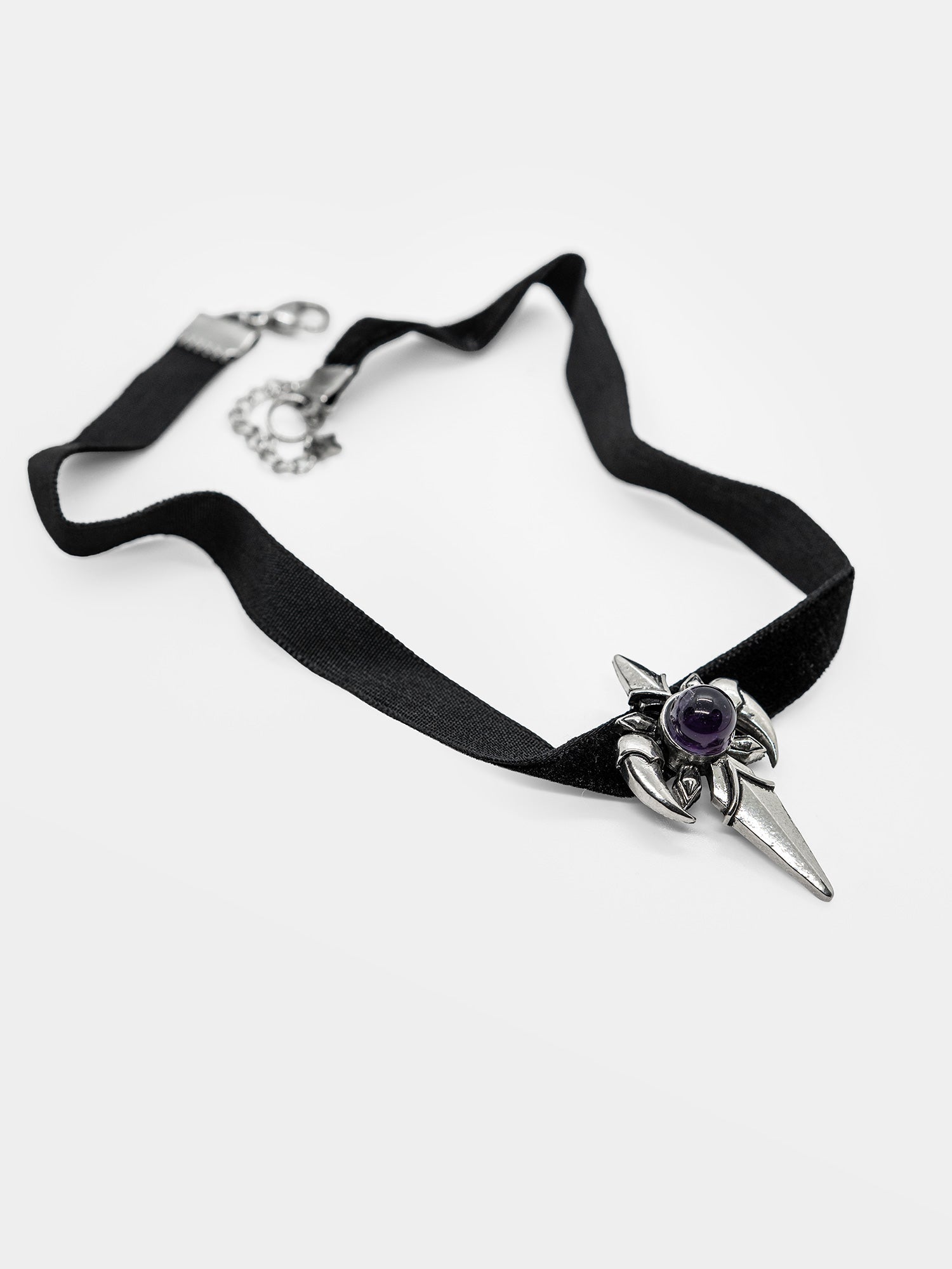 The material used to make the necklace is velvet, stainless steel and nickel-plated steel.
