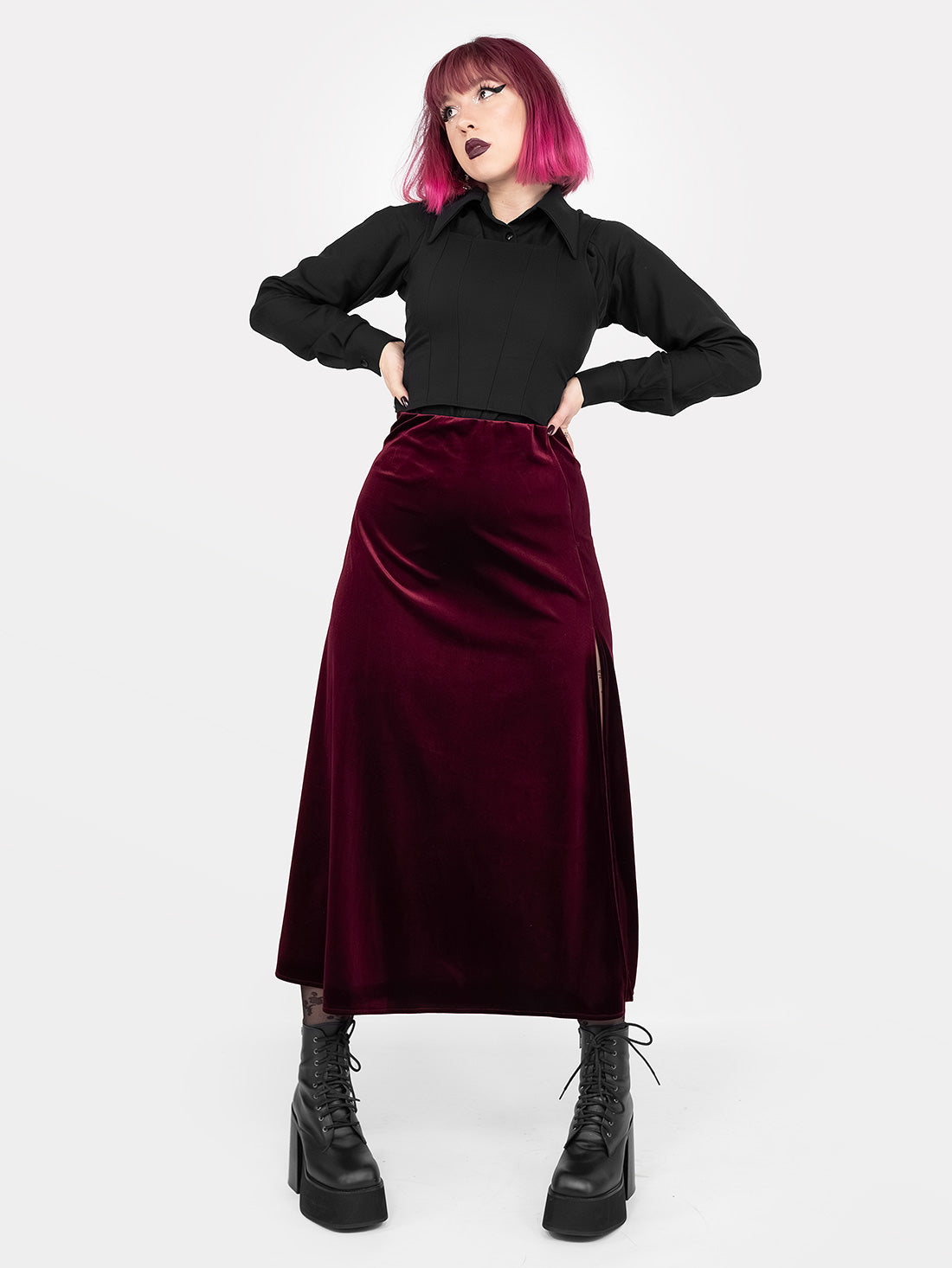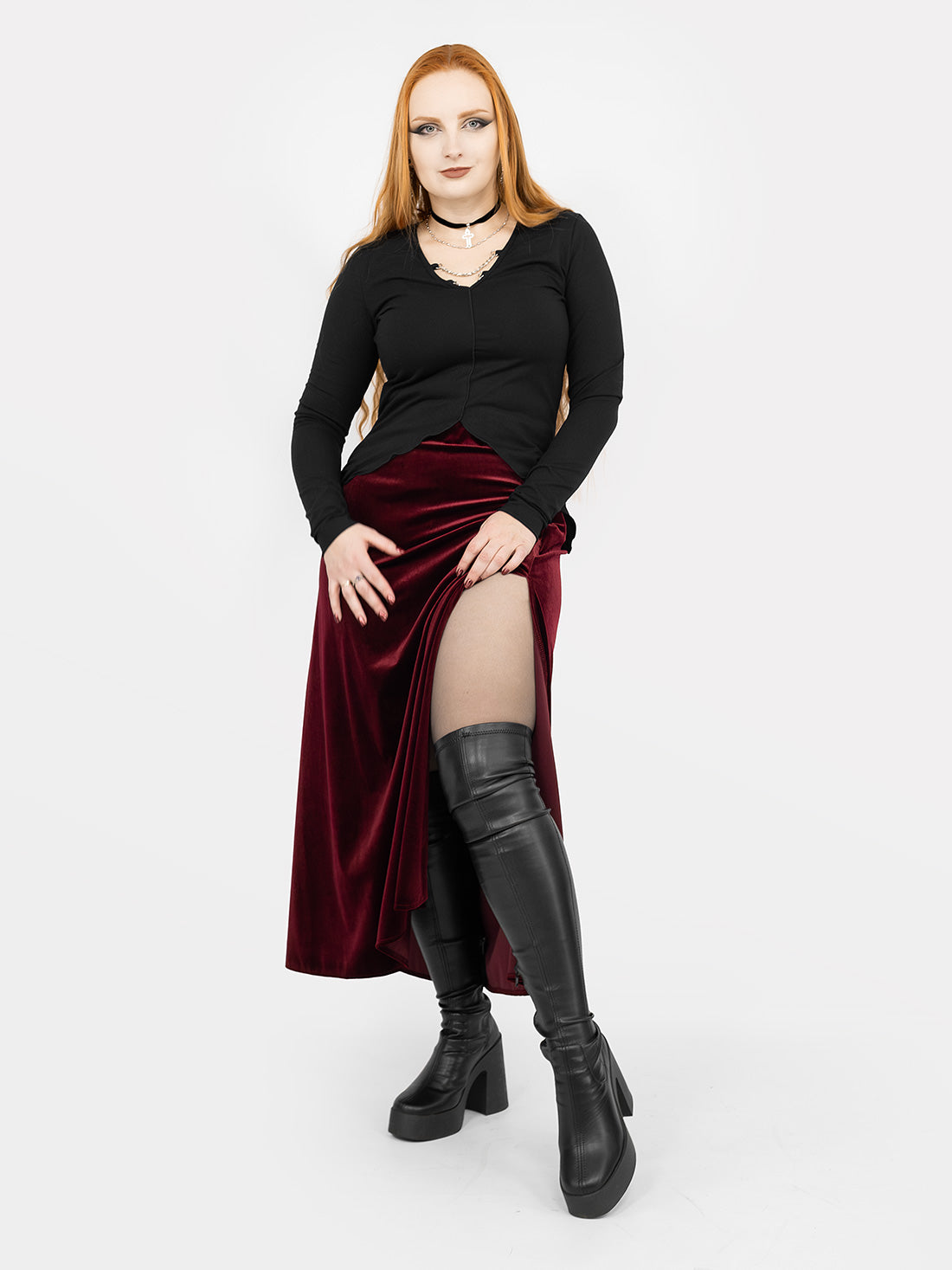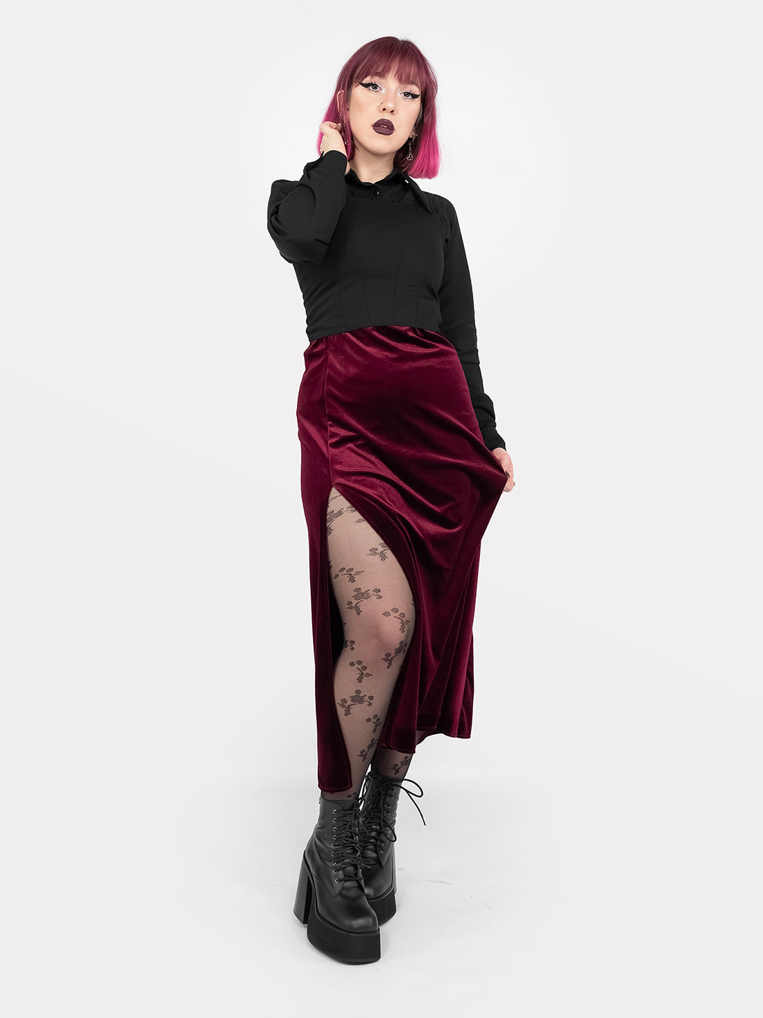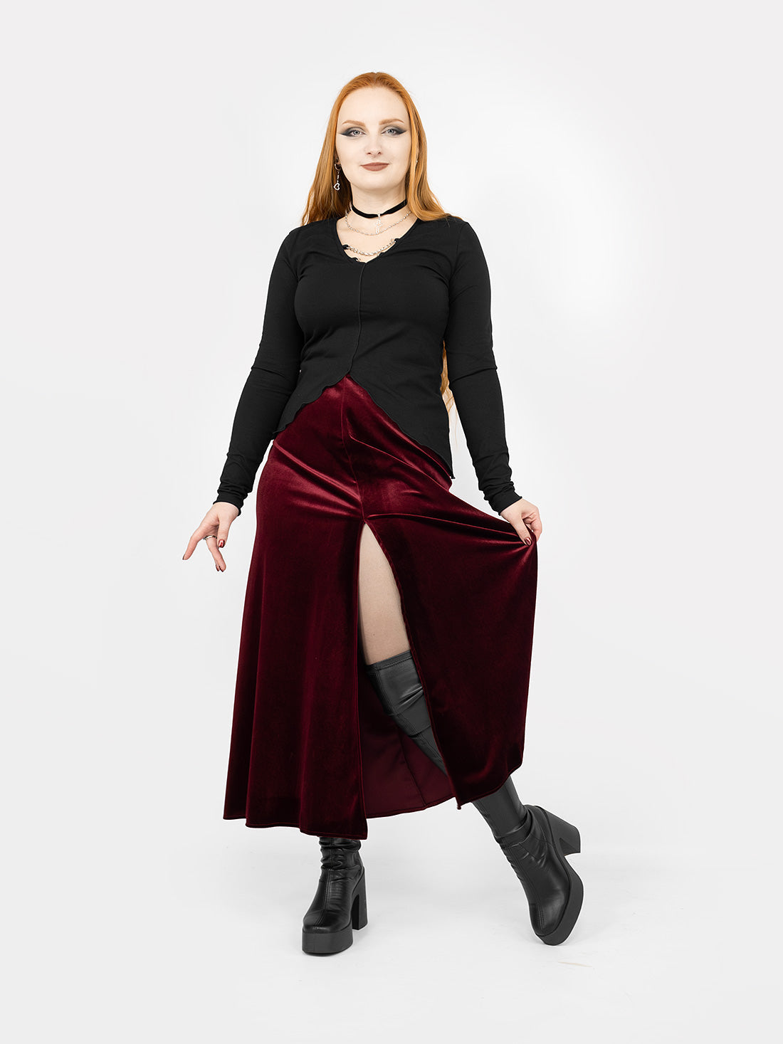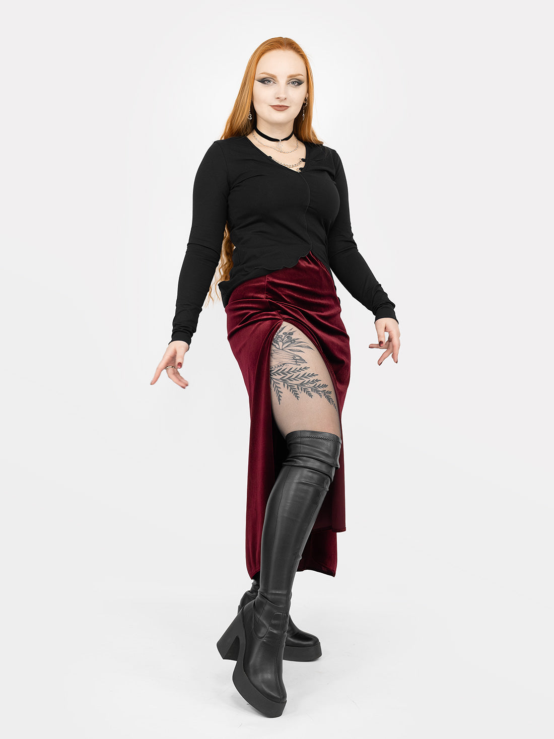 Here before you is a charming midaxi skirt inspired by the gothic aesthetic, a mesmerizing mix of darkness and whimsical charm, carefully hand-sewn in a Polish sewing studio. This skirt, made of velvet, invites you to a world of luxurious comfort and captivating style. 🐍