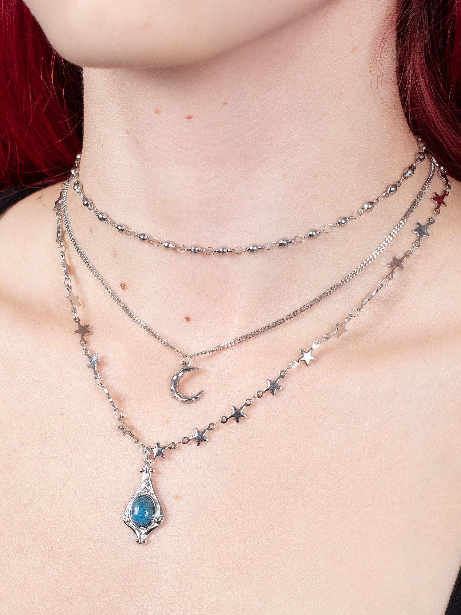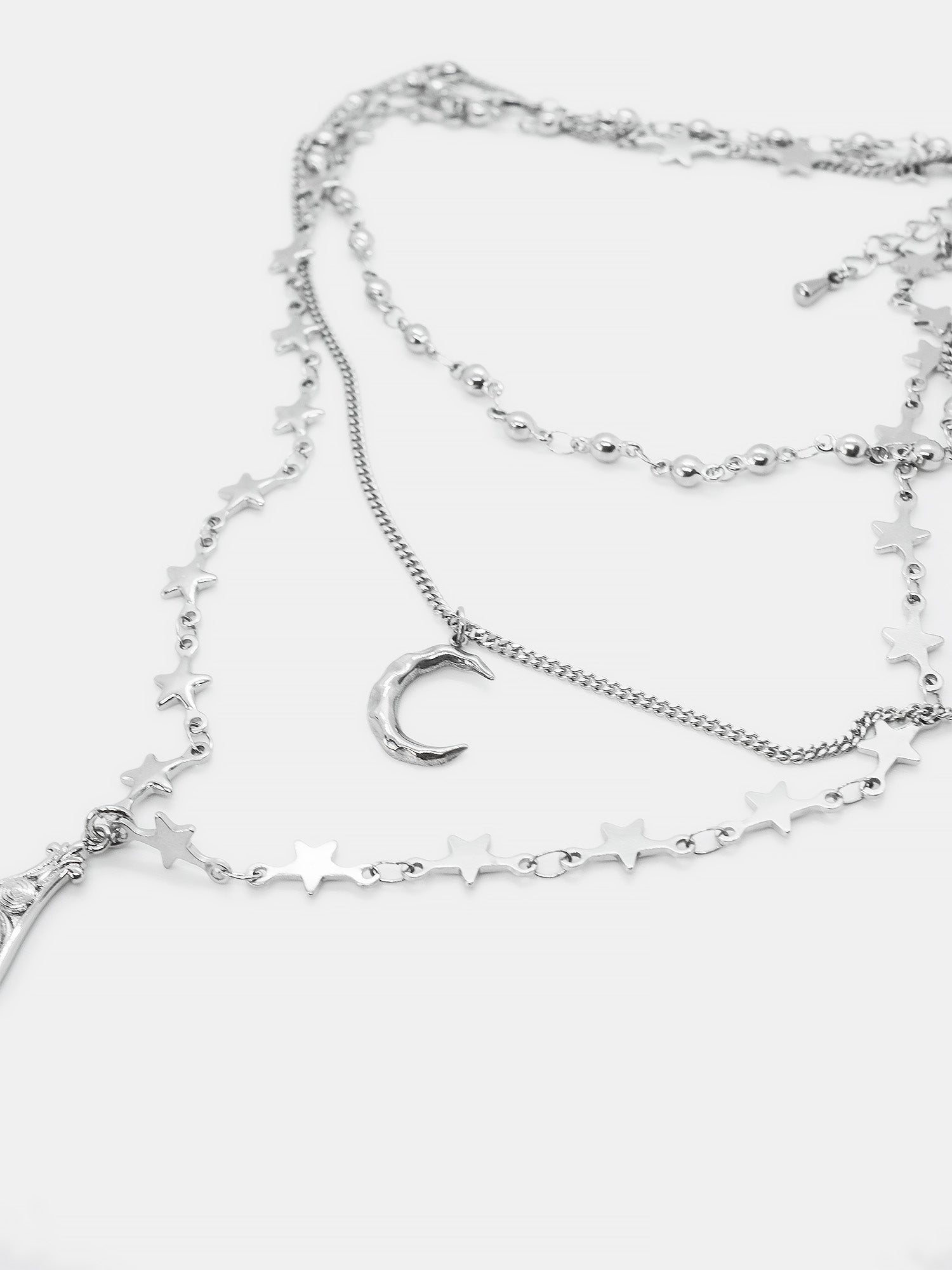 The shortest necklace measures 32cm, the longer one 50cm. It also has a 5cm adjustable chain, allowing you to choose the right circumference.