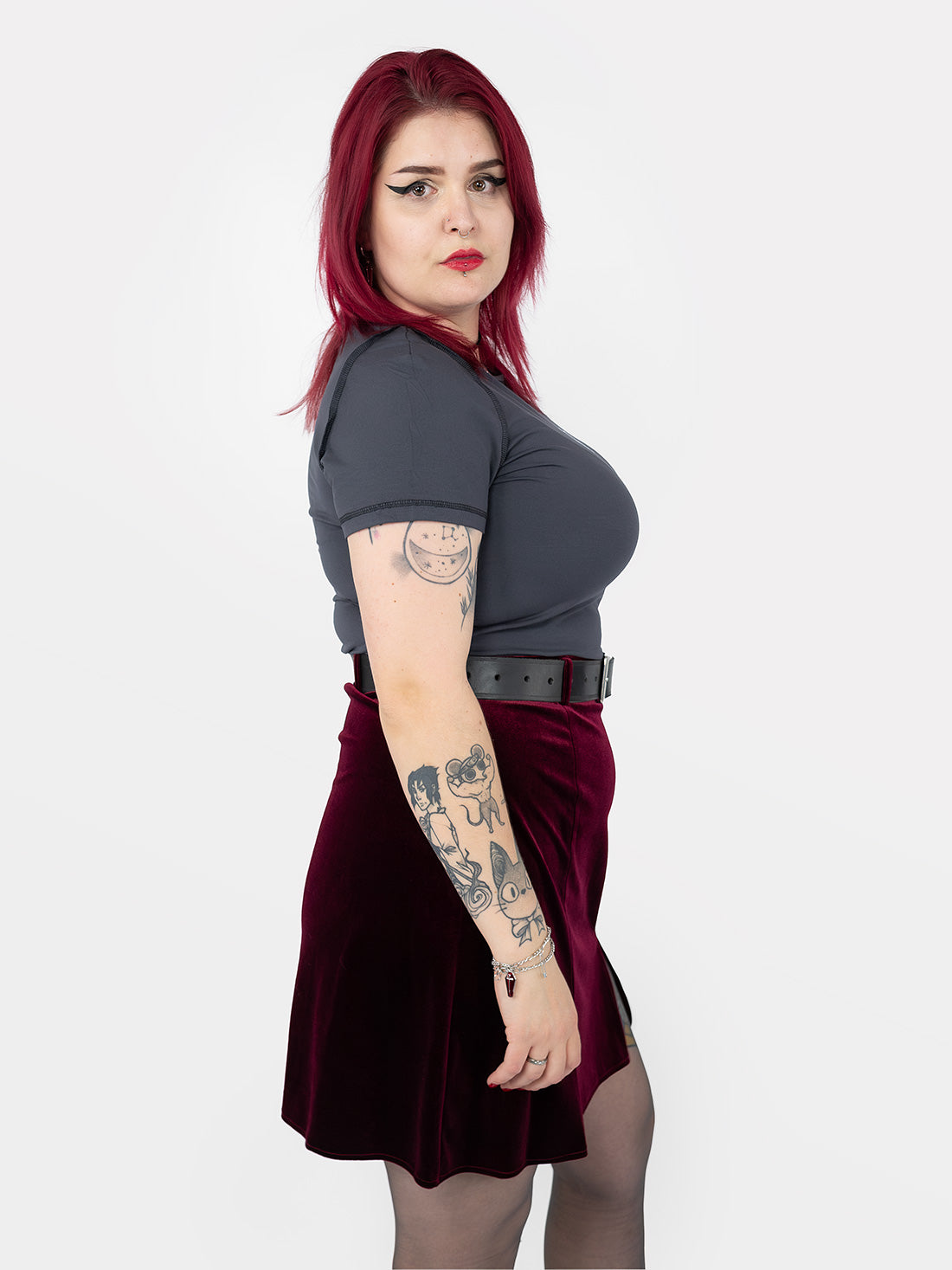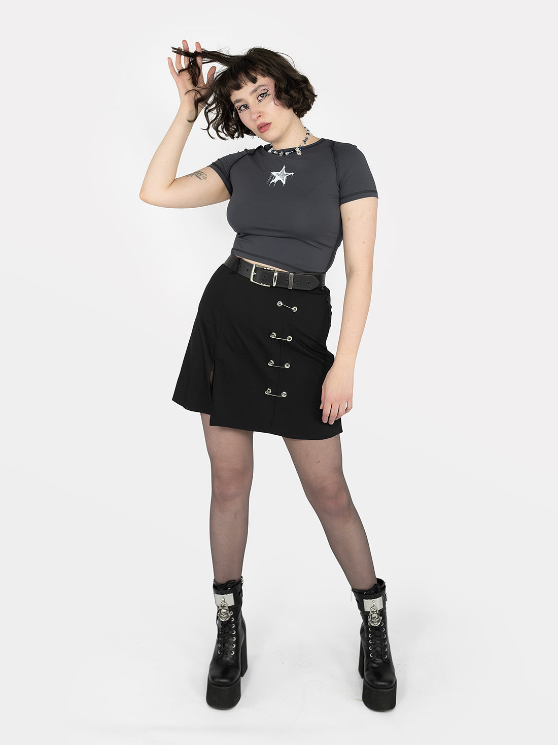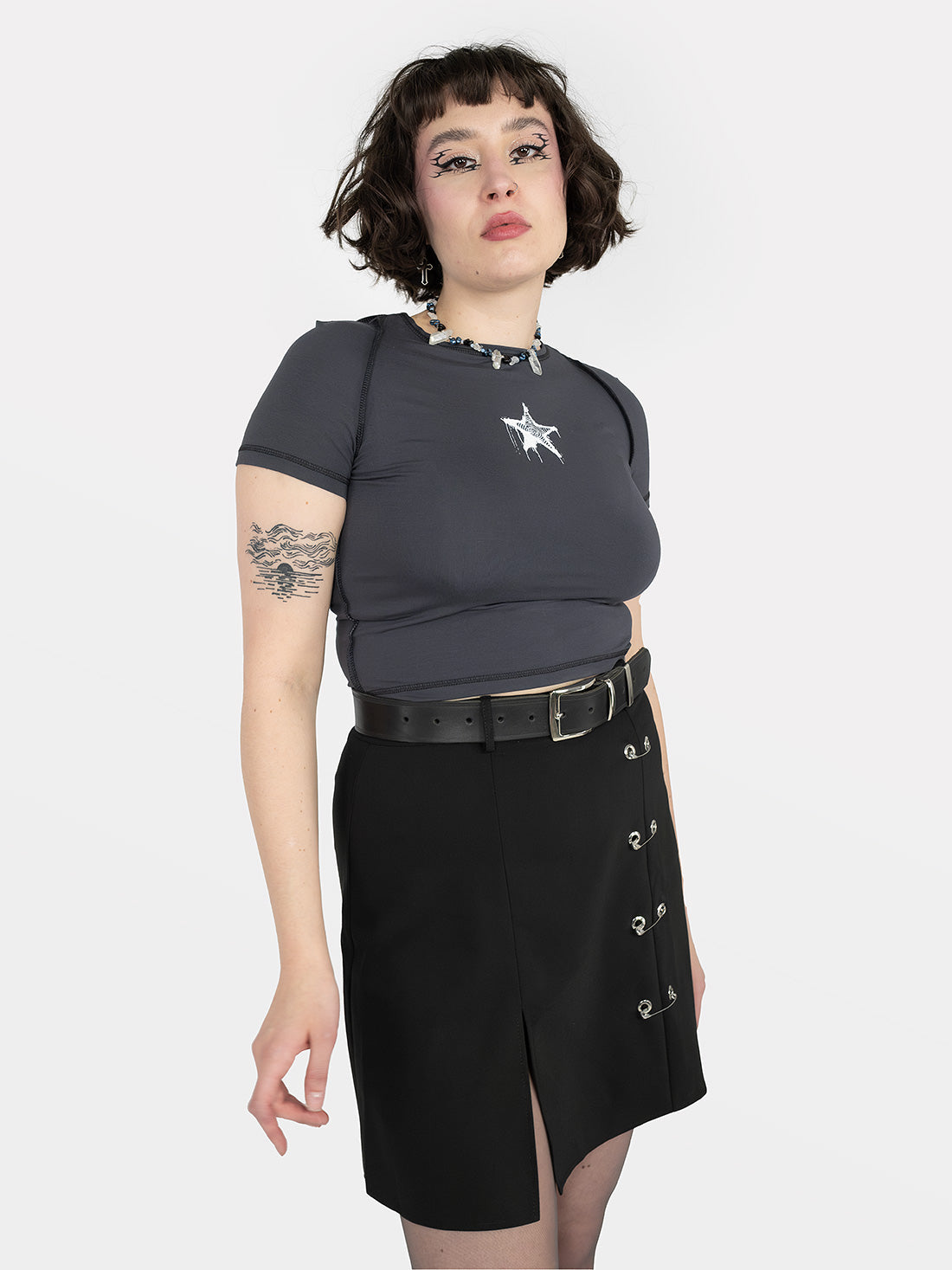 It also goes great with other black bottoms - a tennis skirt will make the outfit scream tumblr grunge, and one of our midi skirts will create a nice contrast between the elegant bottom and the playful crop top.