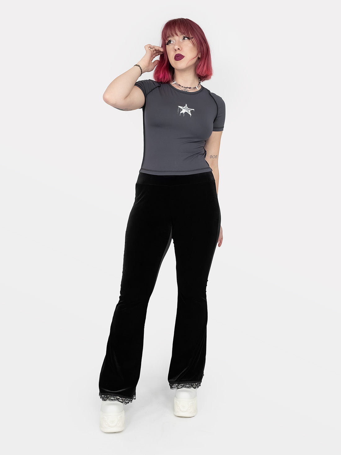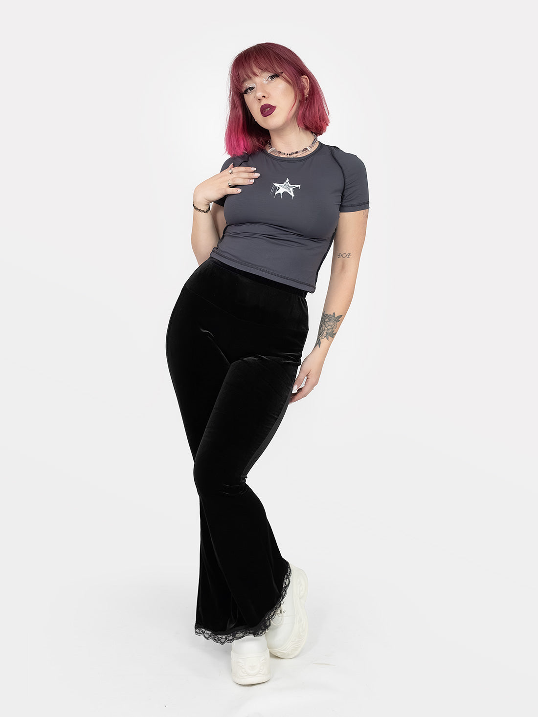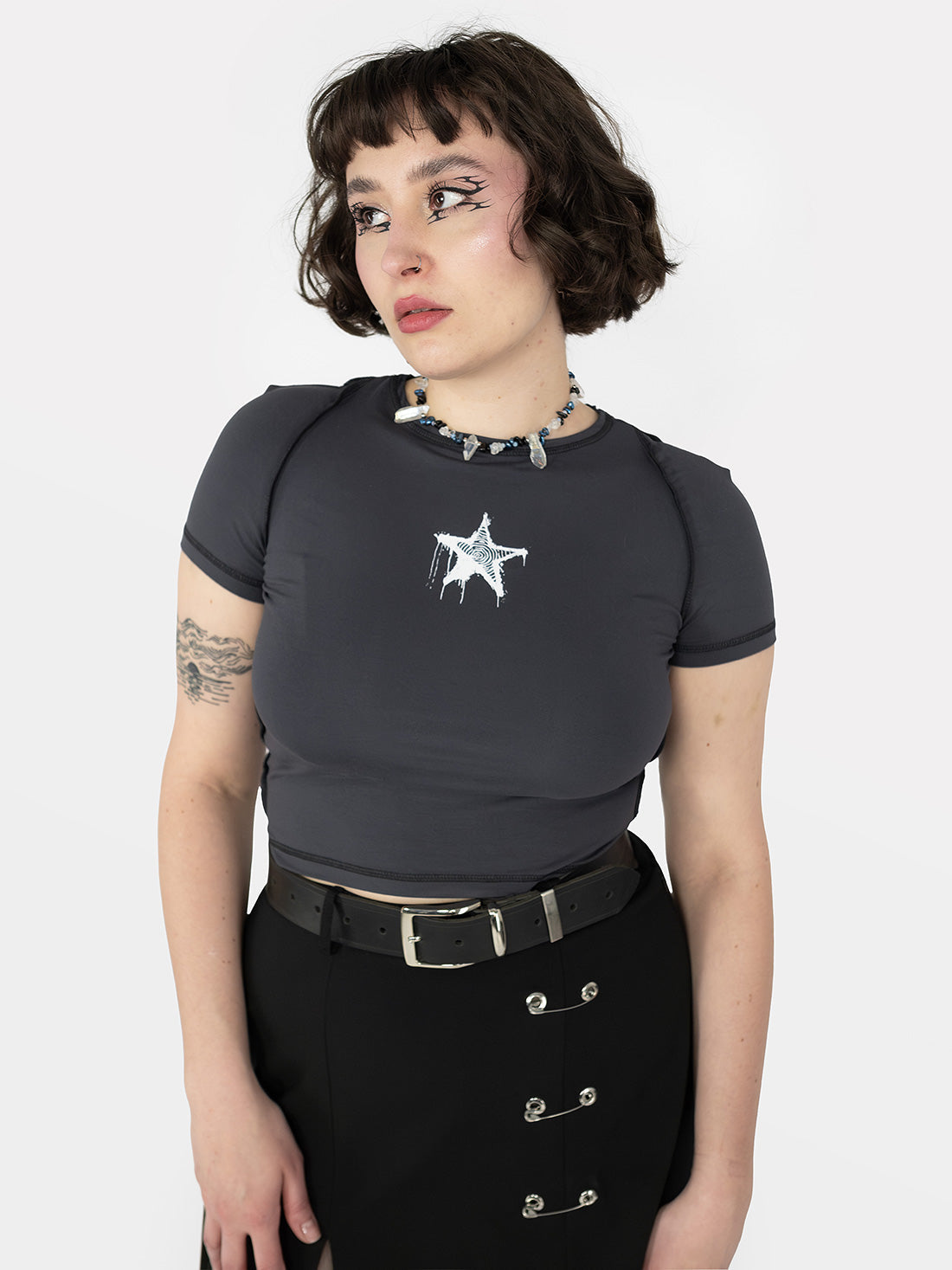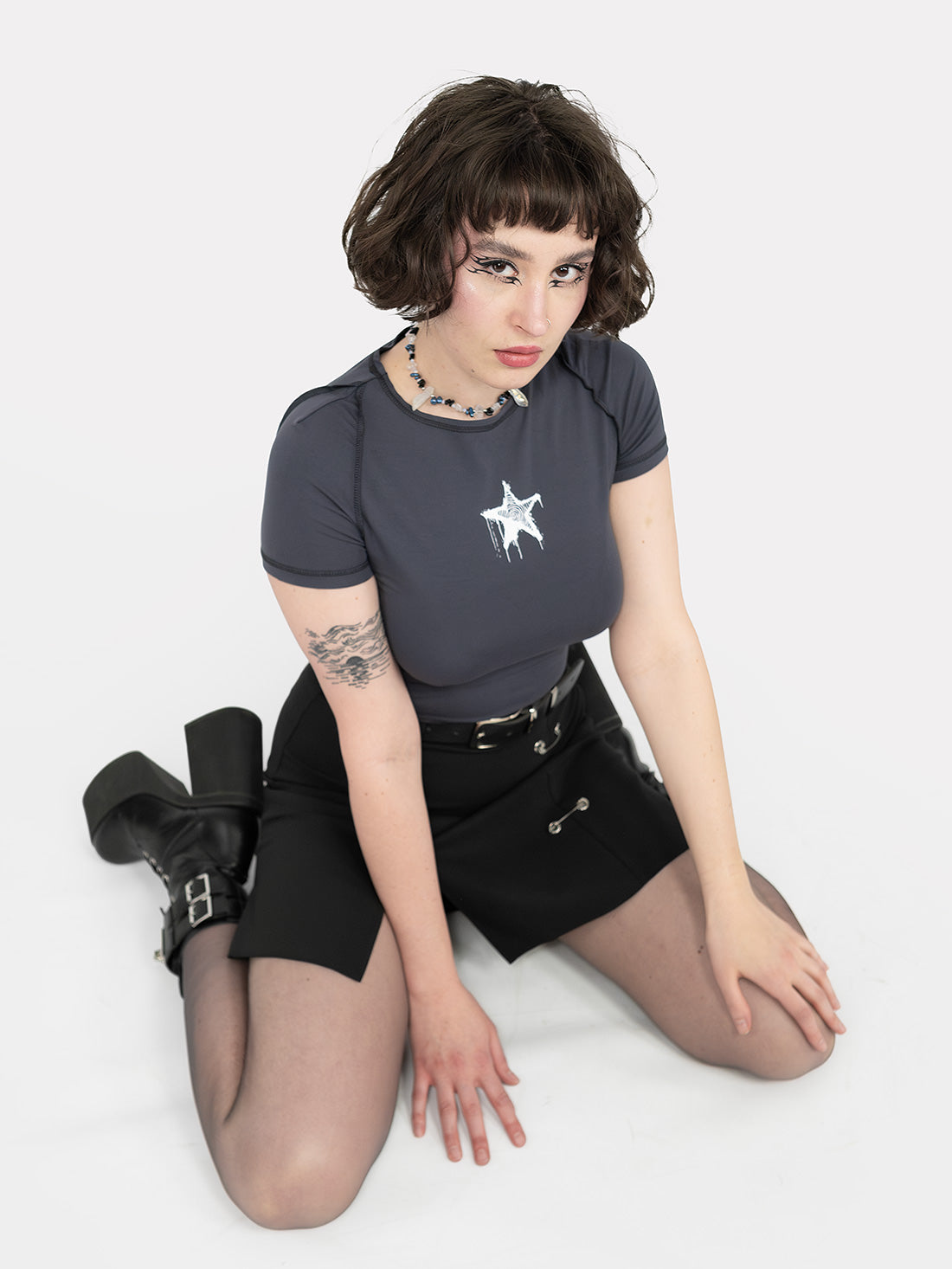 It also goes great with other black bottoms - a tennis skirt will make the outfit scream tumblr grunge, and one of our midi skirts will create a nice contrast between the elegant bottom and the playful crop top.