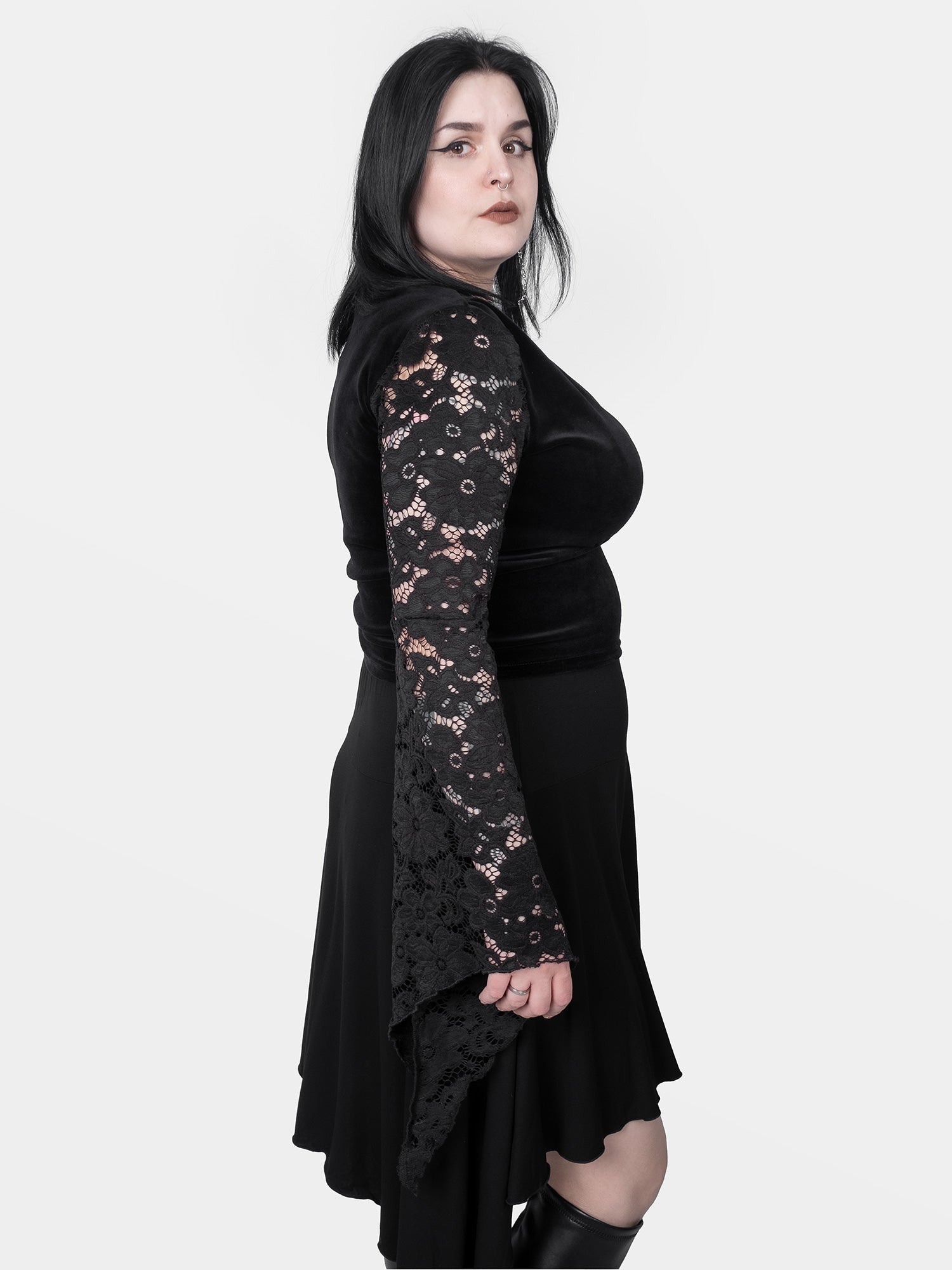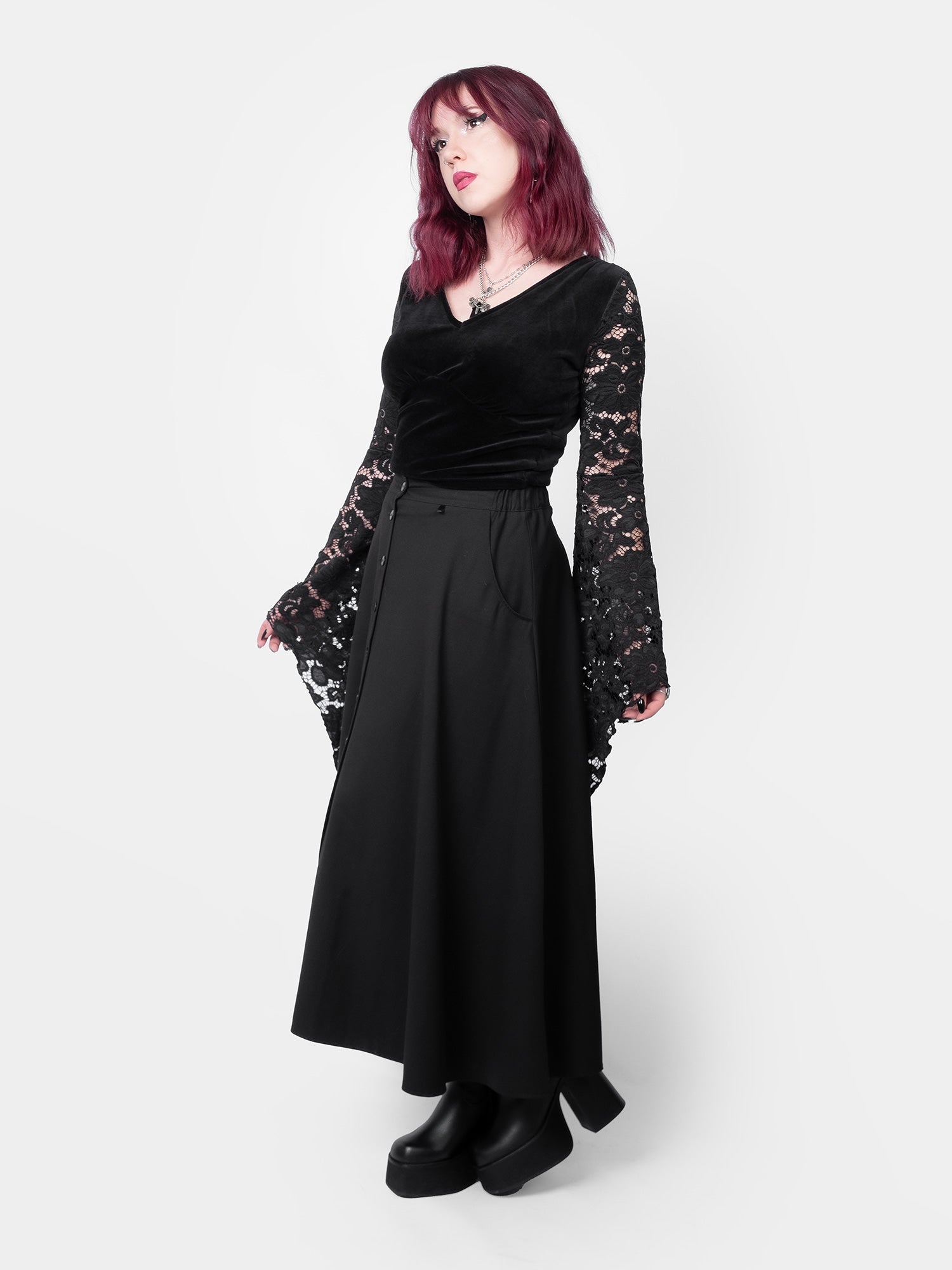 You can style this blouse in many ways – pair it with the asymmetrical Lilith skirt and chunky boots for a full gothic look, ideal for a concert night.