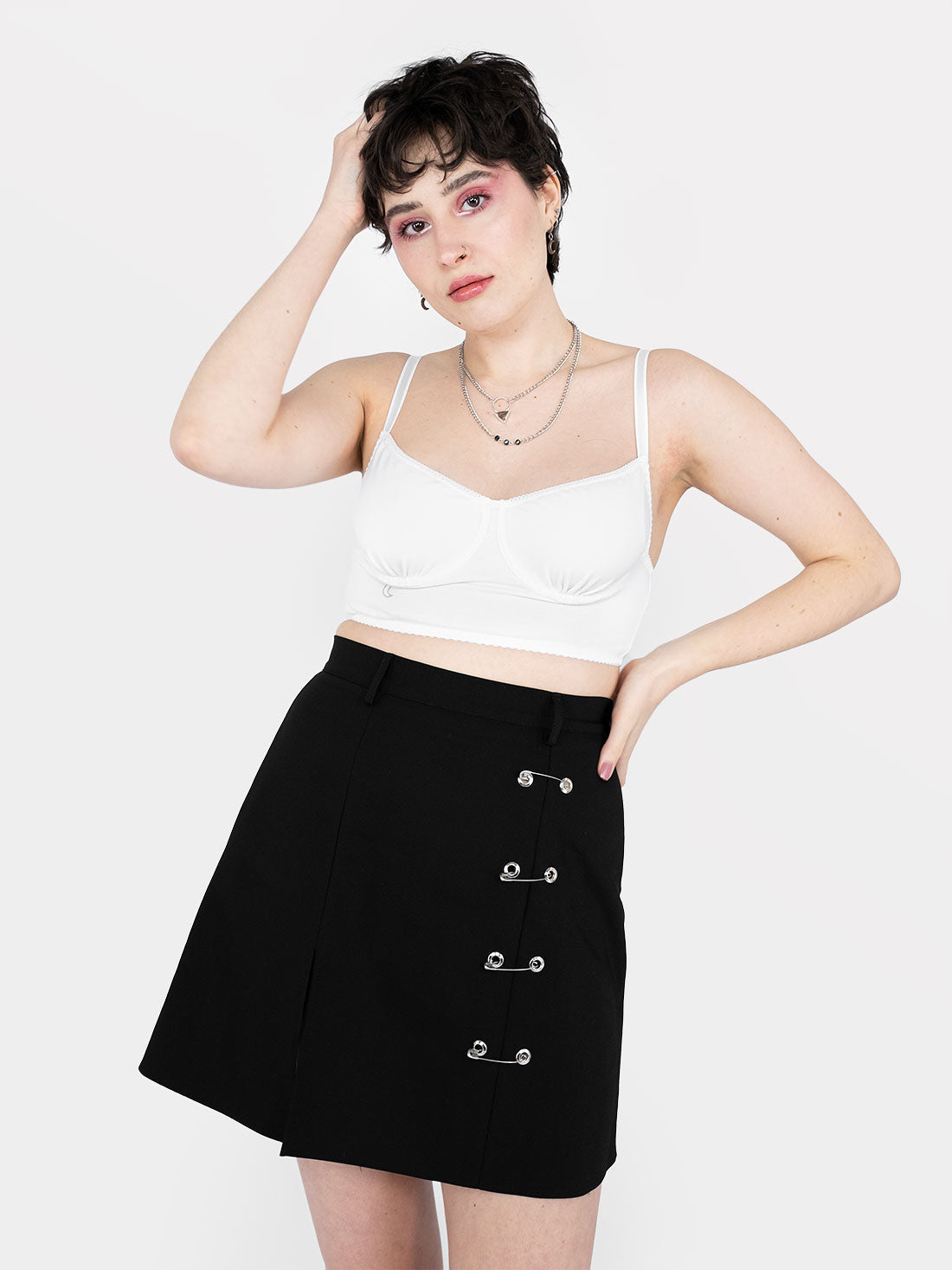 The cups are sewn high,and you can put a padding in them, which will additionally stiffen the bust.